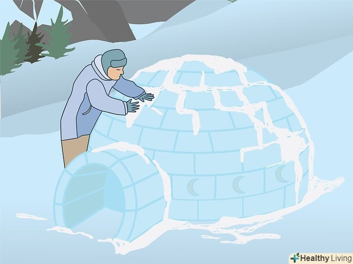 Зміцнивши стіни голку зовні, ви зможете відпочити в Сніжному будинку. голку можна зробити ще міцніше, заліпивши зовні тонкі місця і отвори снігом. До деяких зазорів між блоками легше дістатися зсередини голку, ДО ІНШИХ — зовні. Заліплюйте зазори і отвори снігом, щільно утрамбовуючи його між блоками. [20]- Перевірте стійкість і міцність споруди, злегка натиснувши на неї. Якщо блоки не зсуваються і стіна здається монолітною на дотик, голку зможе протистояти стихії.