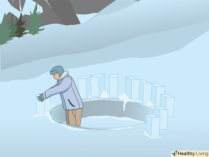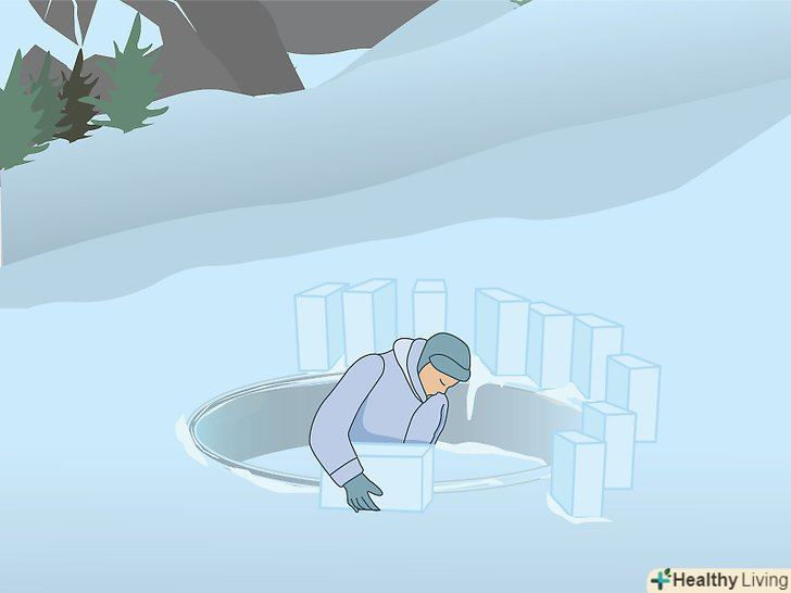 Додайте в стіну блоки, вирізані зі снігу всередині периметра голку. Вирізайте блоки сніжним ножем або мачете і складайте їх в наступний ряд, починаючи з нижньої точки попереднього ряду і просуваючись по колу, що піднімається вгору по спіралі. У міру зростання стіна почне загинатися всередину, а блоки будуть зменшуватися в розмірах.- Щоб збільшити стійкість і запобігти падінню верхніх блоків, робіть скіс між верхнім і нижнім блоками.