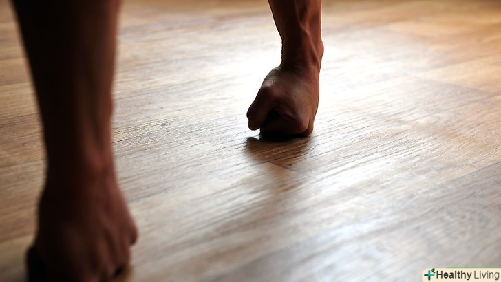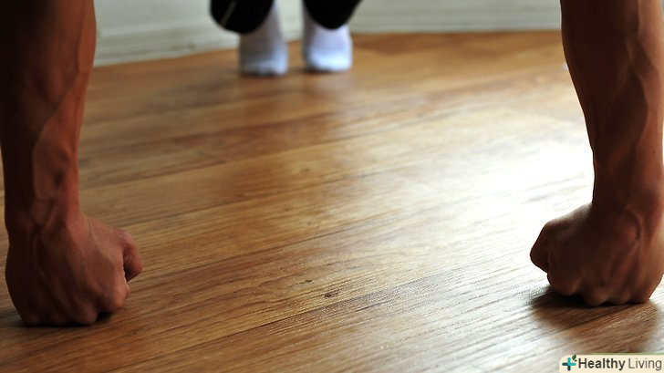 Виконуйте віджимання на кісточках, не на кулаках, а саме на кісточках. ці віджимання виконуються при розташуванні всього перших двох кісточок кулака на підлозі. Віджимайтеся на кахлі, мармурі або на підлозі тренажерного залу. Якщо вам не вдасться виконати жодного віджимання на згаданих вище поверхнях, то спробуйте займатися на килимі, лінолеумі або килимі.