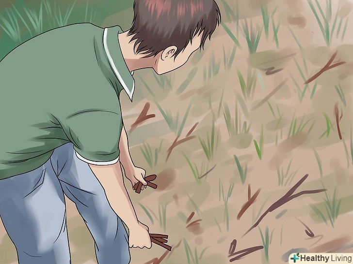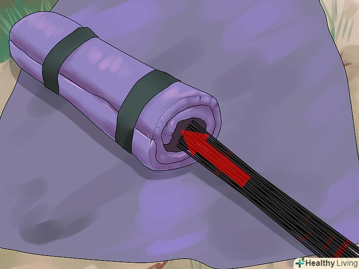 Очистіть місце для намету від сміття. Коли ви її встановите, очистити місце від каменів, гілок та іншого сміття, буде вже неможливо. Виконайте цю роботу заздалегідь, і Ви забезпечите себе набагато більш комфортним сном.- Якщо ви можете, шукайте щільні області з хвоєю, якщо ви знаходитесь поруч з ялинками. Соснові голки можуть забезпечити відмінний м'який природний матрац, який допоможе зберегти ваш комфорт.