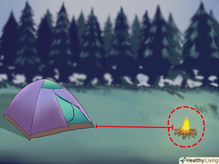 Намет повинен стояти подалі від вогню. в ідеалі, ви повинні розмістити намет проти вітру, який дме з боку багаття. Переконайтеся, що всі вугілля або іскри не будуть летіти в бік намету, щоб уникнути пожежонебезпечних ситуацій.- Розумним рішенням буде поставити намет з не вітряної сторони від туалету, якщо ви збираєтеся жити в кемпінгу довгостроково довго.