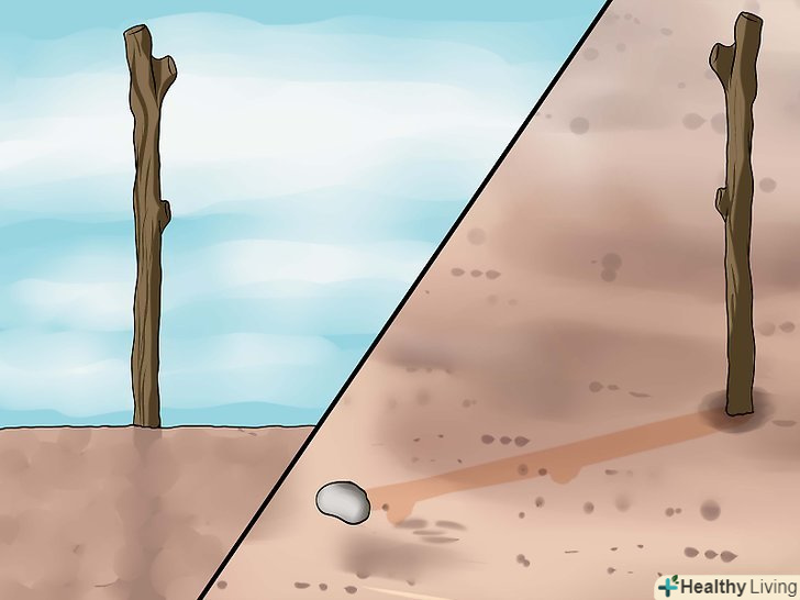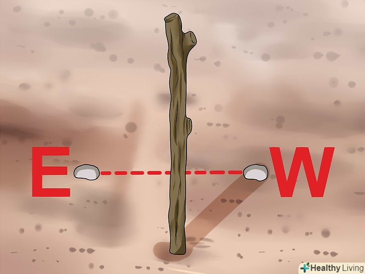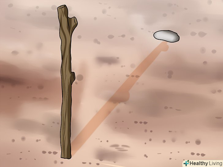 Застроміть в землю палицю під кутом 90 градусів так, щоб бачити її тінь. втім, можна скористатися і будь-який інший тінню, аби вона падала від статичного об'єкта, але чим він вищий, тим легше буде помітити переміщення тіні, а чим вже його верхівка, тим точніше буде результат. Втім, майте на увазі, що чим вище об'єкт, тим більш розпливчастою буде тінь. Переконайтеся що тінь падає на рівне місце.