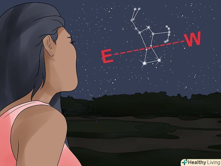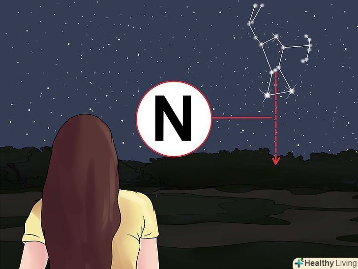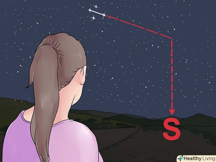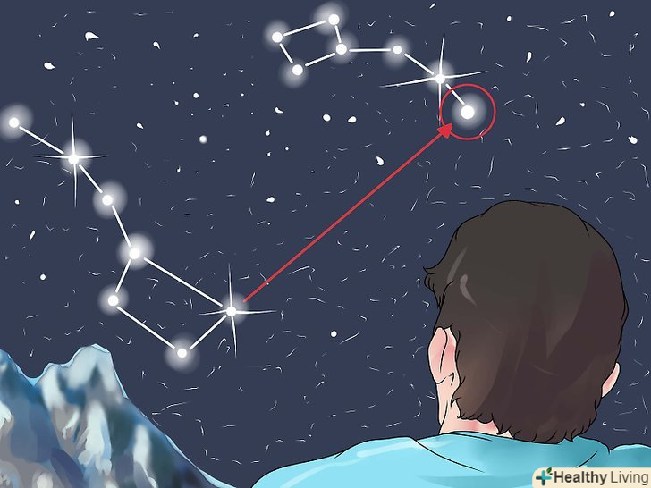Проведіть пряму уявну лінію від Полярної зірки перпендикулярно землі. північ буде в тій стороні, де лінія торкнеться землі. Якщо в цій точці знаходиться який-небудь примітний об'єкт (дерево, будівля, вершина гори), можете орієнтуватися на нього.
