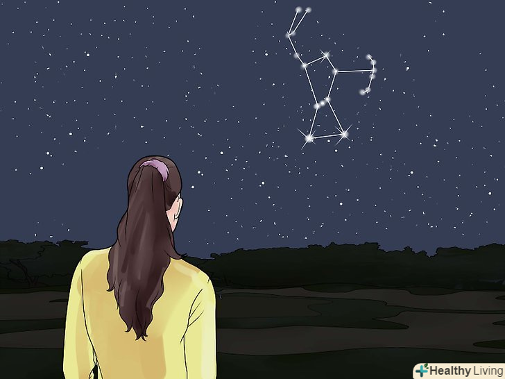 Знайдіть в нічному небі Полярну зірку. Полярна зірка-це крайня зірка в ручці ковша Малої Ведмедиці. Якщо вам важко її знайти, знайдіть спочатку Велику Ведмедицю. Дві крайні праворуч зірки в чаші її ковша, якщо провести між ними пряму лінію, вкажуть на Полярну зірку. Можна також пошукати сузір'я Кассіопеї, яке завжди знаходиться навпроти великої Ведмедиці і нагадує букву M або W. Полярна зірка розташована приблизно посередині між центральною зіркою Кассіопеї і третьою зіркою в ручці ковша Великої Ведмедиці.