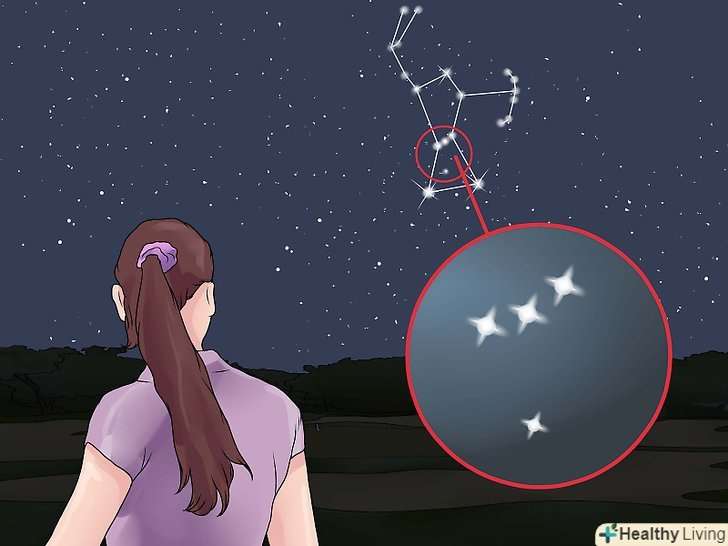 Знайдіть пояс Оріона. у сузір'ї Оріона є кілька добре помітних зірок. Так званий пояс (три зірки в ряд) розташований зі сходу на захід. Знайдіть його, до нього «прикріплений» меч Оріона.