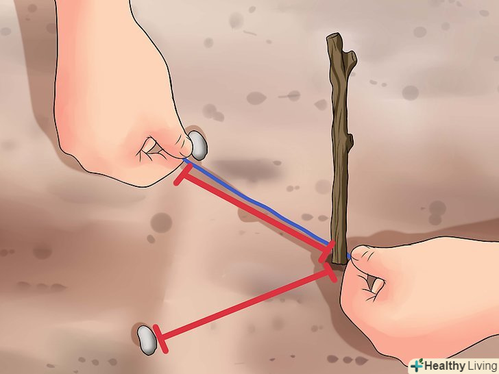 Відзначайте камінчиком кінець тіні при кожному вимірі. коли тінь знову досягне спочатку виміряної вам довжини (тобто її кінець буде лежати на накресленої окружності), відзначте цей кінець більш помітною міткою.