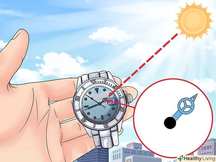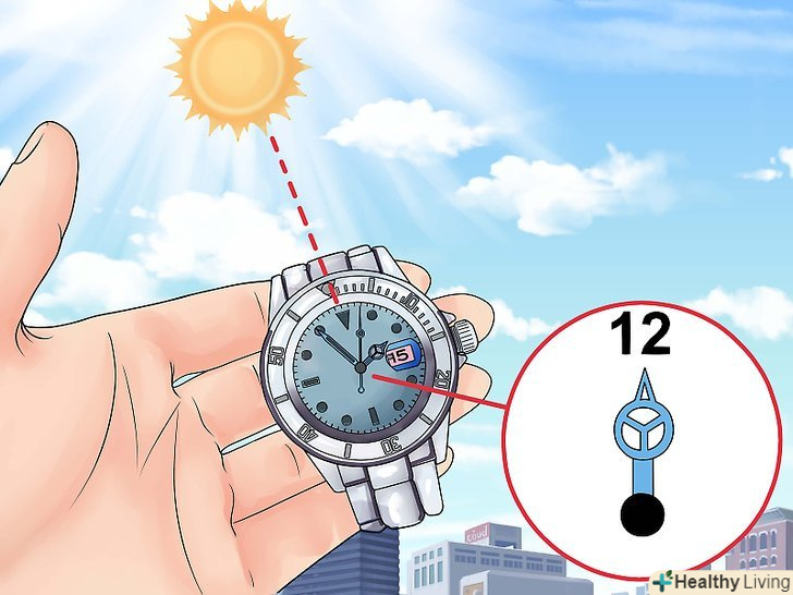 Візьміть годинник з Годинниковою і хвилинною стрілками, як в попередньому методі. направте їх позначкою 12 на сонці. Якщо ваш годинник переведені на літній час, направте їх на сонце цифрою 1.