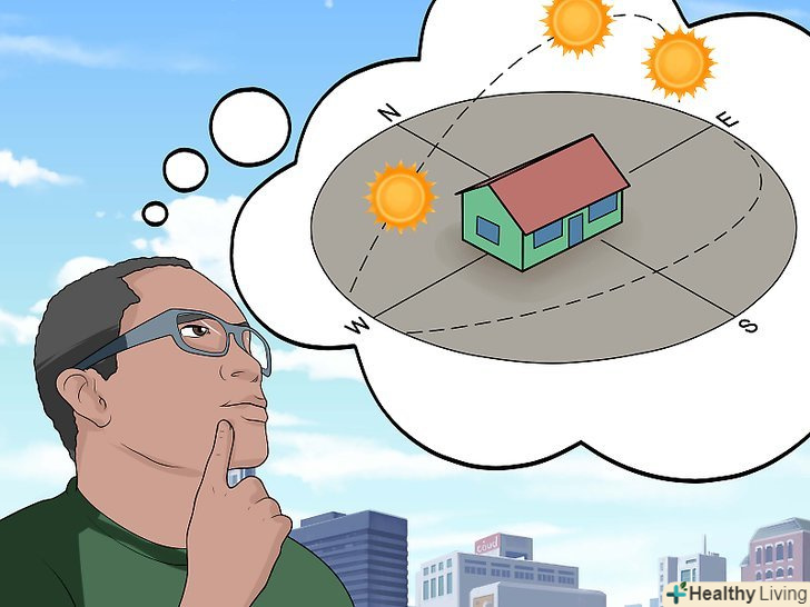 Зрозумійте, по якій траєкторії рухається Сонце. Запам'ятайте що сонце завжди сходить на Сході і заходить на заході. У Північній півкулі сонце буде рухатися зі сходу на захід по дузі, зверненої на південь, в Південному — на північ (тобто завжди в напрямку екватора). Інакше кажучи, рано вранці сонце (відразу після сходу) сонце буде перебувати на Сході, а пізно ввечері (прямо перед заходом) — на заході.- Залежно від пори року траєкторія руху сонця може злегка змінюватися, особливо далеко від екватора. Наприклад, влітку Схід і захід будуть далі від екватора (північніше в Північній півкулі і південніше в Південному), а взимку навпаки (південніше в Північній півкулі і північніше в Південному). Пам'ятайте, що коли в Північній півкулі зима, в Південному літо. Тільки в дні весняного та осіннього рівнодення Сонце встає точно на Сході, а заходить точно на заході всюди між Північним і Південним Полярним колом.