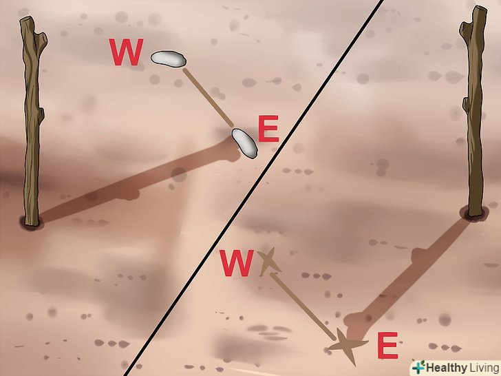 Проведіть між двома відмітками пряму лінію. це буде приблизна лінія Схід — Захід.