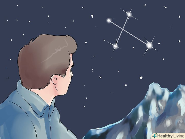 Знайдіть дві зірки, що утворюють довгу вісь Хреста. лінія, проведена через ці дві зірки, вказує на уявну точку в небі, близьку до Південного полюса. Продовжуйте цю лінію вниз від сузір'я на відстань, в чотири з половиною рази більшу, ніж відстань між цими зірками.