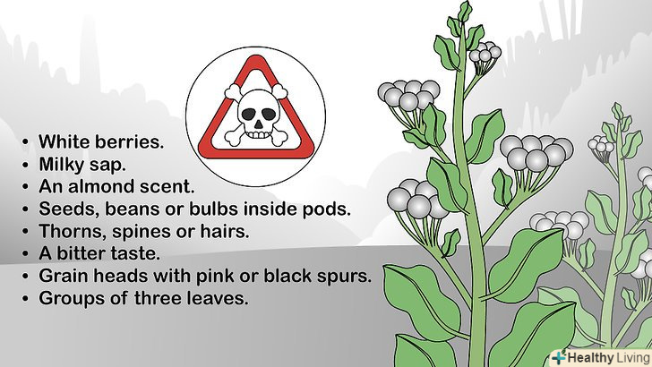 Ви повинні знати ознаки отруйних рослин. деякі рослини, які виглядають, як отруйні, на смак і запах абсолютно їстівні, але деякі з них мають ознаки того, що їх не можна їсти людям. Якщо ви будете уникати такі рослини, то цілком можливо, ви пропустите їстівне рослина, але все-таки залишитеся живі. Тримайтеся подалі від рослин з такими характеристиками: [1]- Молочний сік.