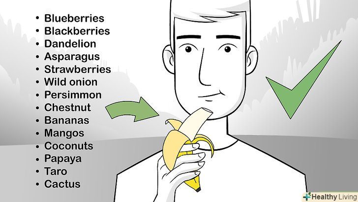 Шукайте впізнавані їстівні рослини. якщо ви знаєте, що шукаєте, то, можливо, ви знайдете те, що бачили в магазинах на прилавках. Кожна рослина, що вважається диким має бути перевірено на їстівність вищеописаним способом, так як деякі отруйні рослини схожі на їстівні. У будь-якому випадку, рослини, схожі на їстівні, можна пробувати: [2]- Чорниця