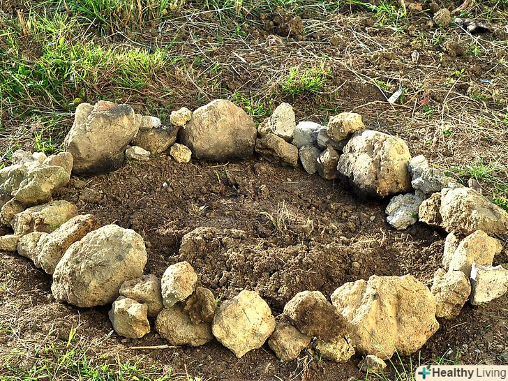 Викопайте неглибоку яму. ця яма повинна бути того ж розміру, що і багаття, який ви хочете розпалити; в більшості випадків можна зупинитися на ямі розміром від 50 см х 50 см до 1м х 1м.