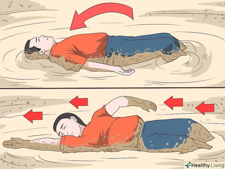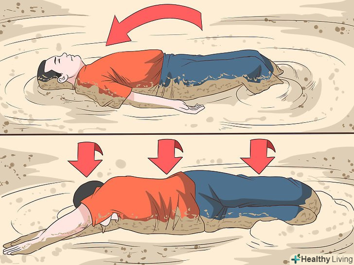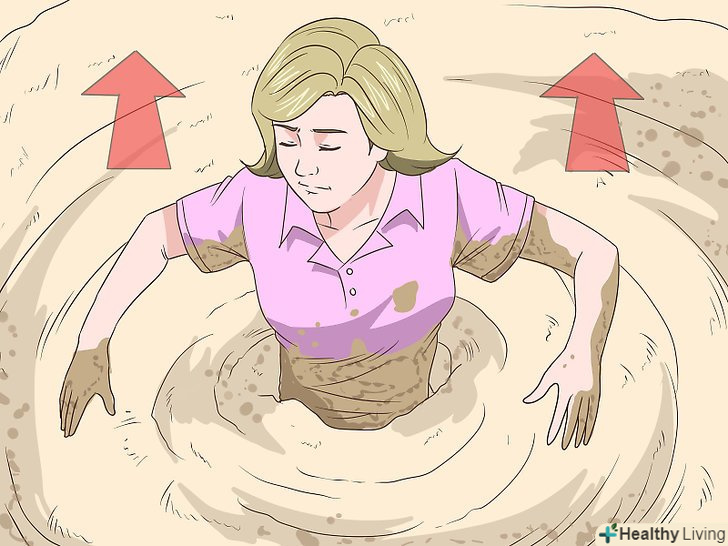 Ляжте на спину. Якщо ваші ноги занурюються дуже швидко, сядьте і відхиліться назад. Збільшення площі контакту повинно допомогти вам вивільнити ноги за рахунок виключення створюваного ними тиску і утримання їх на плаву. Коли ви відчуєте, що ноги починають вивільнятися, відкотитеся від пісків в сторону і звільнитеся від їх хватки. Ви опинитеся по вуха в грязі, але це найшвидший і безпечний спосіб вибратися. [1]