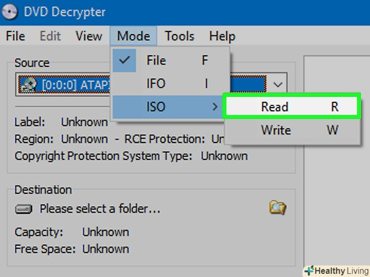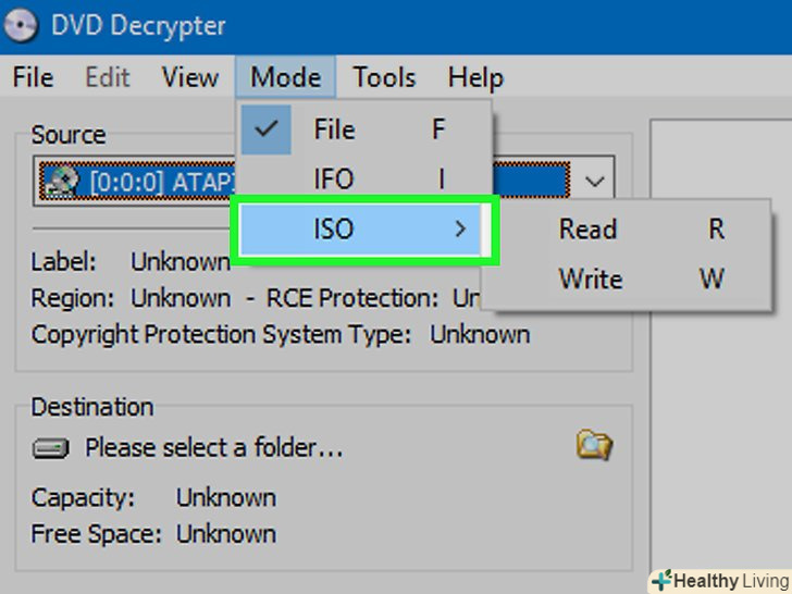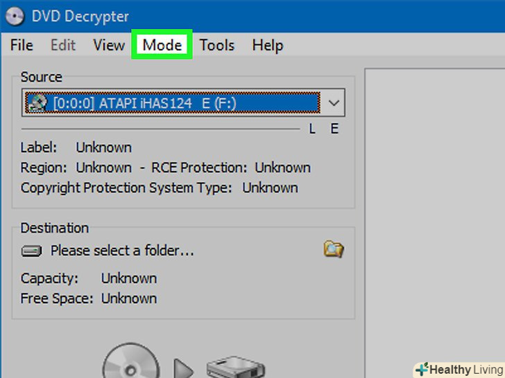 3. Клацніть по вкладціMode (Режим). вона знаходиться у верхній частині вікна DVD Decrypter. Відкриється випадаюче меню.