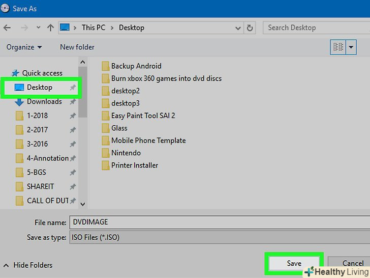 7. Клацніть поРобочий стіл, а потім натисніть OK . це означає, що образ диска з грою буде збережений на робочому столі комп'ютера.