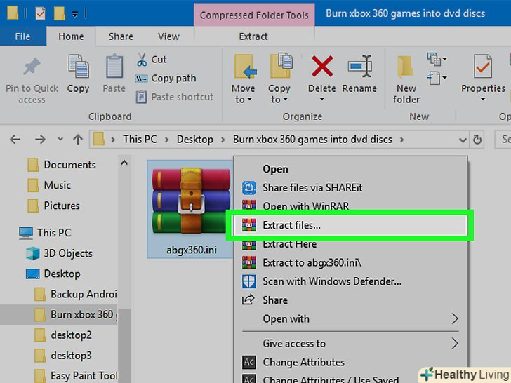 1. Розпакуйте архів " abgx360.ini». це архів (з патчем), який ви завантажили після того, як завантажили програму ABGX360. Для цього: