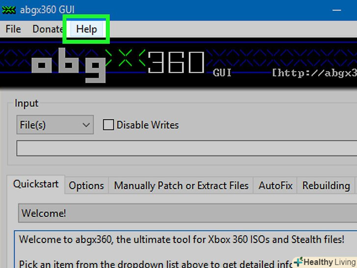 6. НатиснітьHelp (Довідка). ця вкладка знаходиться у верхній частині вікна ABGX360.