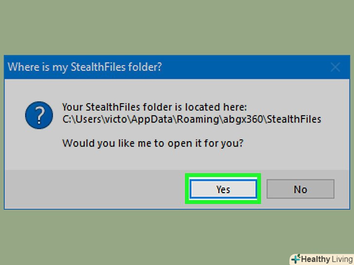 7. Клацніть поWhere is my StealthFiles folder (де папка StealthFiles). ця опція знаходиться у верхній частині випадаючого меню «Довідка».