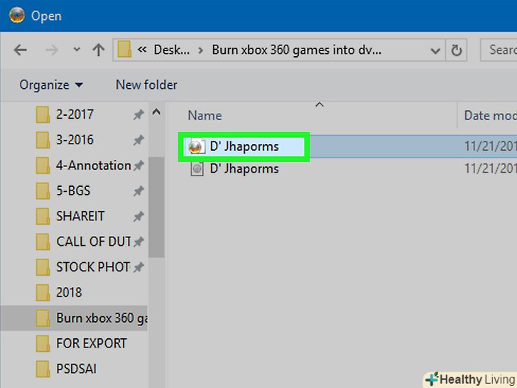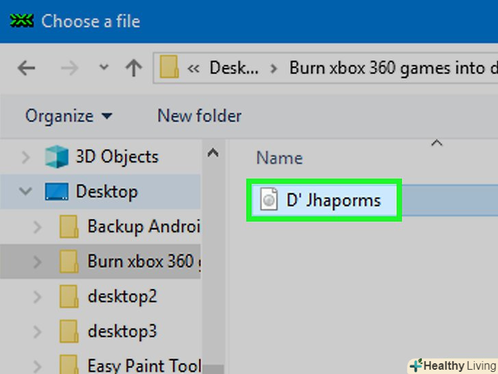 5. Виберіть образ диска з розширенням .dvd. у вікні відобразяться дві версії образу диска з грою: з розширенням .iso (це вихідний образ, який створений програмою DVD Decrypter) і з розширенням .dvd (це пропатченний образ, створений програмою ABGX360). Клацніть по файлу з розширенням .dvd, щоб вибрати його.