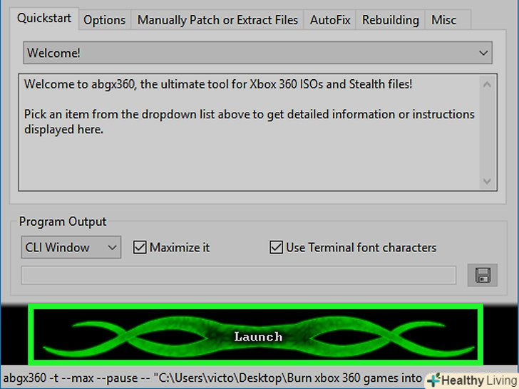 16. НатиснітьLaunch (запустити). ця кнопка знаходиться в нижній частині вікна. Програма ABGX360 приступить до зміни (пропатчіванію) ISO-файлу гри, щоб її можна було оновлювати і грати по мережі.
