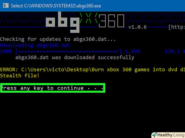 17. Дочекайтеся, коли пропатчіваніе завершиться. на це піде кілька хвилин. Коли на екрані відобразиться повідомлення " Press any key to continue "(натисніть будь-яку клавішу, щоб продовжити), натисніть клавішу на клавіатурі, щоб зберегти пропатченную версію ISO-файлу на робочому столі. Тепер можна приступити до запису створеного файлу на DVD-диск.