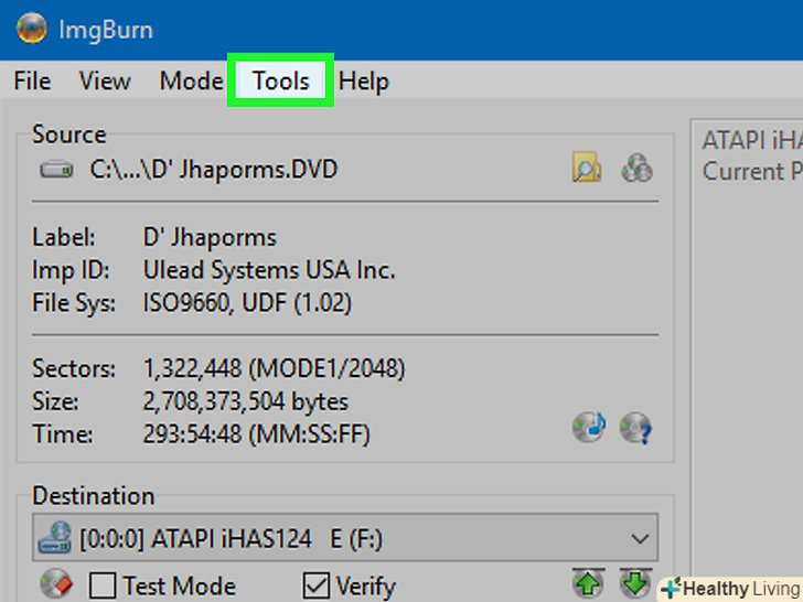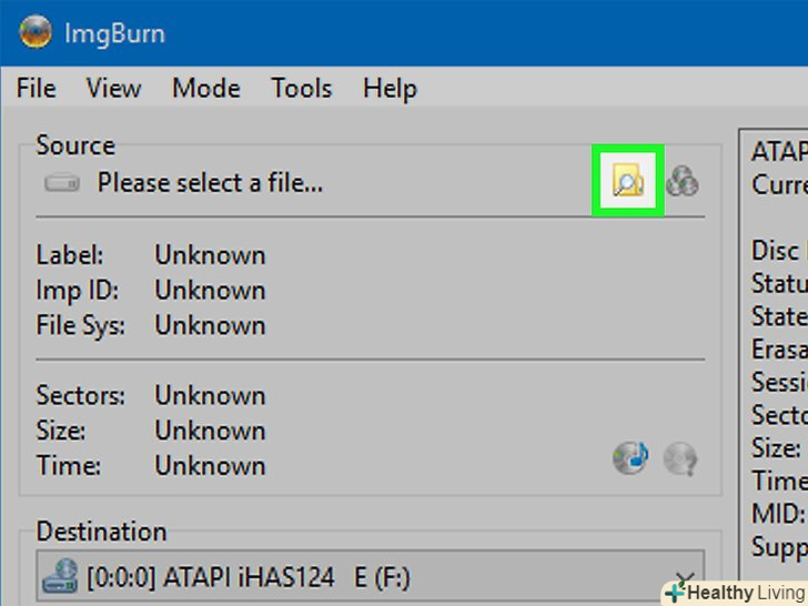 6. НатиснітьВідкрити . файл з розширенням .dvd буде додано до вікна ImgBurn.