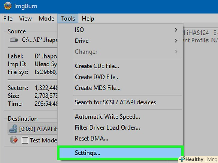 15. Клацніть поOK . ця кнопка знаходиться в нижній частині сторінки. Ви повернетеся до головного вікна ImgBurn.