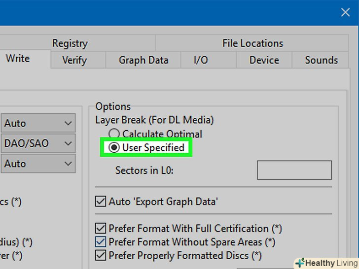 10. Відзначте опцію «User specified» (вказане). ця опція знаходиться під заголовком «Layer Break» (зміна шару) в розділі «Options» (опції), який розташований у верхній правій частині вікна. На екрані з'явиться текстове поле.