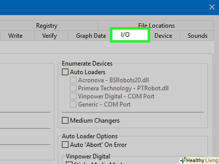 12. Перейдіть на вкладкуI/O (Введення/Виведення). цей і наступні два кроки є необов'язковими, але стануть в нагоді в разі абсолютно нових дисків.