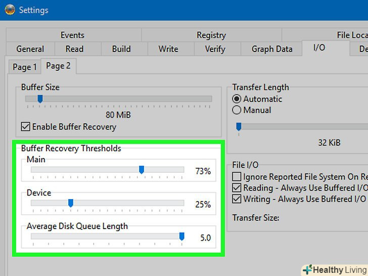 14. Налаштуйте повзунки в розділі «Buffer Recovery Thresholds» (розмір буфера). цей розділ знаходиться в нижній лівій частині вікна. Для цього: