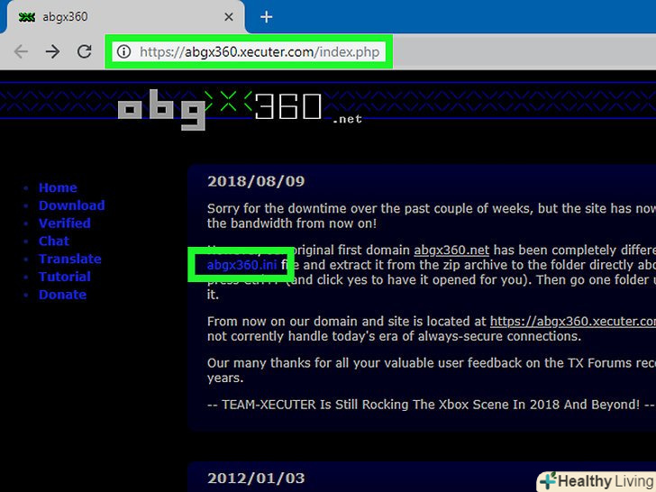5. Скачайте патч ABGX360. перейдіть на сайт http://abgx360.xecuter.com/index.php і натисніть на посилання «abgx360.ini «у розділі» 2014/10/02 " у верхній частині сторінки. Цей файл дозволить вам підключитися до сервера ABGX360, що необхідно для зміни ISO-файлу.