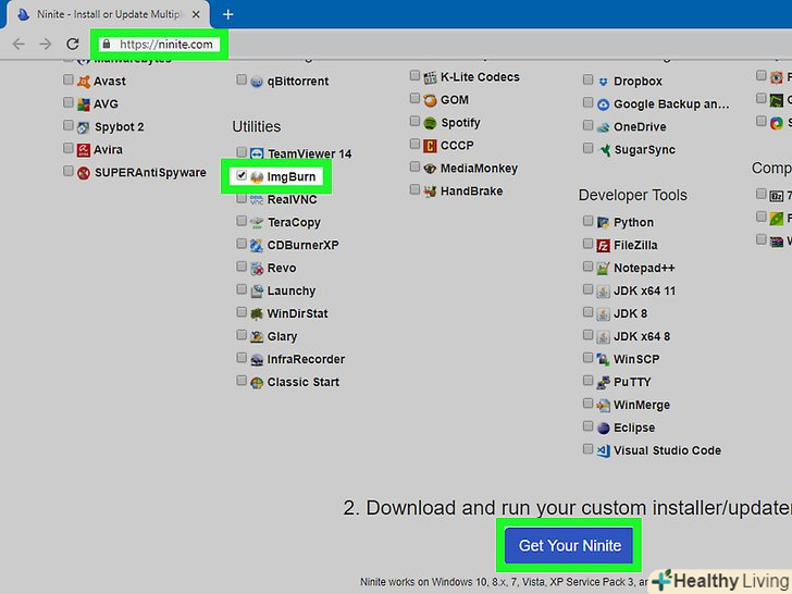 • Натисніть "Get Your Ninite" (завантажити Ninite);