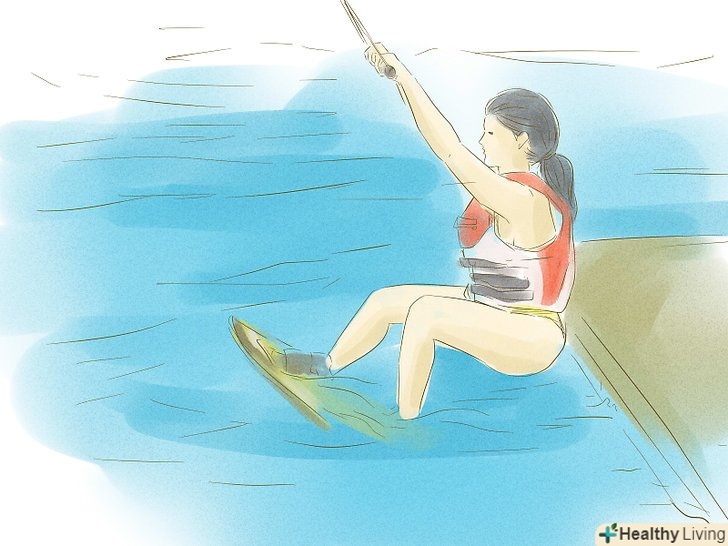 - Тримайте ручку фала низько. Новачкам буде легше вставати, якщо фал буде майже паралельний воді, це трохи відрізняється від техніки, використовуваної у водних лижах.