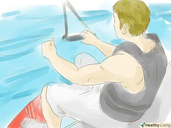 Тримайте рукоять двома руками, попросіть водія човна відплисти настільки, щоб натягнути трос, це дозволить уникнути ривка.