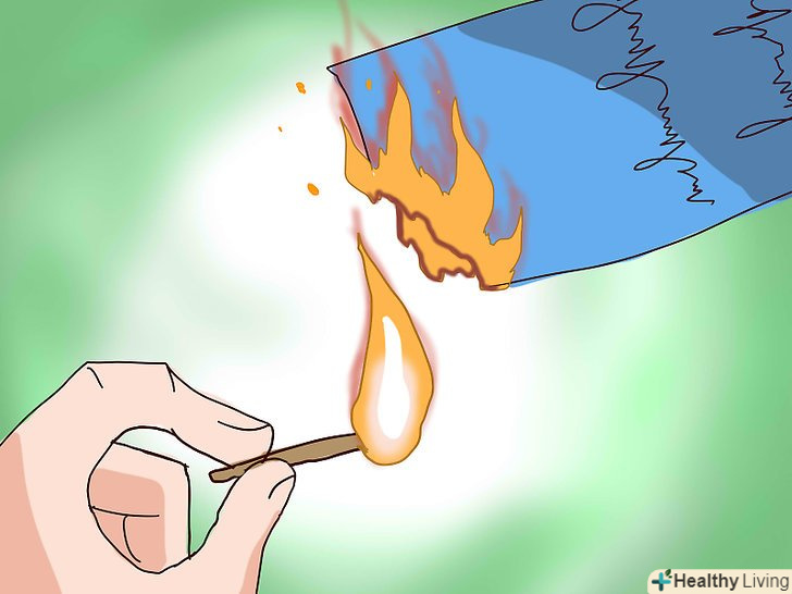 Підпаліть сірник і тримайте її під папірцем. папірець запалиться і почне горіти. Одним сірником підпаліть папір в декількох місцях.