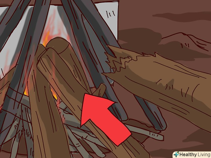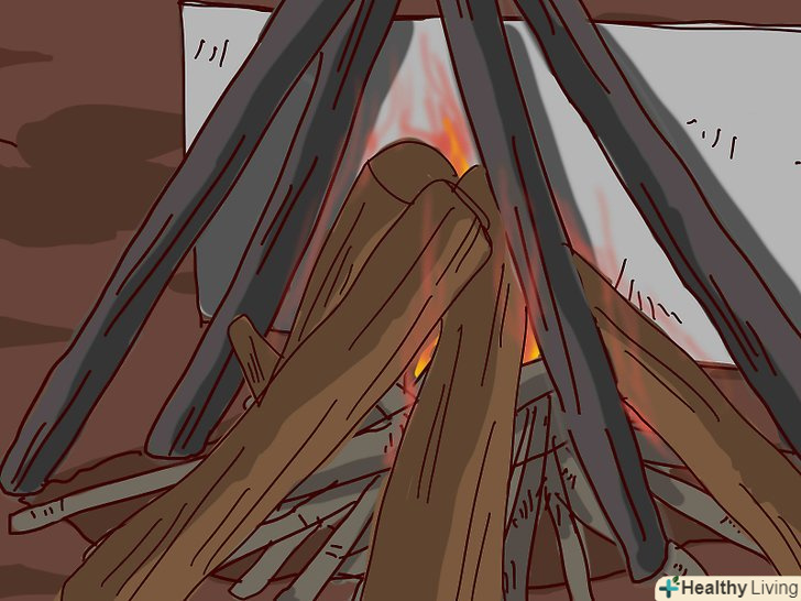 Коли великі гілки загоряться, покладіть на багаття колоду. через 10 хвилин, покладіть ще два колоди і трохи великих гілок. Повторюйте це кожні 45 хвилин за потребою.