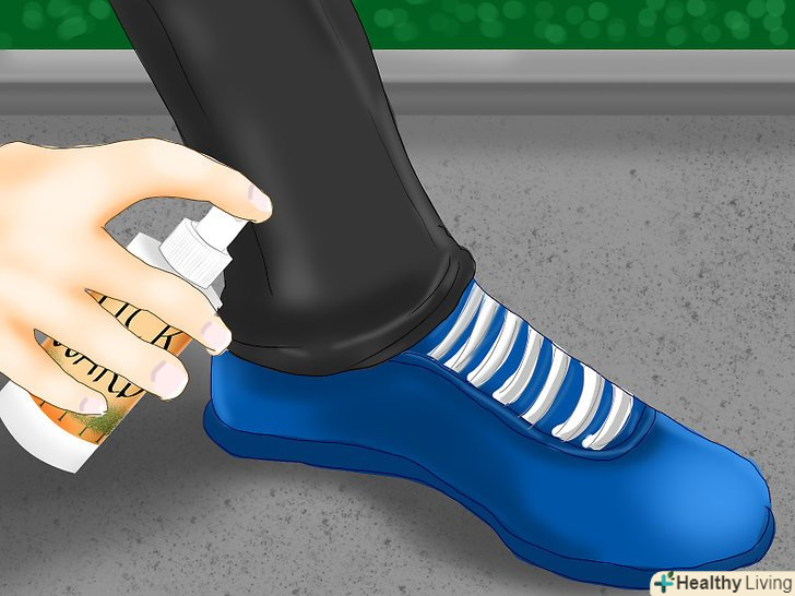 Не забувайте також наносити репелент на взуття. Кліщі зазвичай розташовуються на рівні грунту, тому обприскування взуття репелентом значно знизить ризик підчепити кліща. [19]- Подумайте про це як про першу лінію захисту від укусів кліщів.