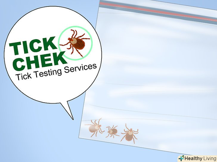 Відправте кліща в лабораторію. якщо ви боїтеся наслідків укусу кліща або проживаєте в регіоні, де поширені кліщові захворювання, помістіть знятого з себе кліща в поліетиленовий пакет, щоб потім можна було визначити тип кліща і відправити його в лабораторію на перевірку. [28]- Вкажіть на пакеті дату, коли ви зняли кліща.