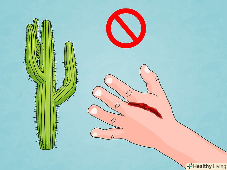 Обходьте стороною колючі рослини. Не торкайтеся кактусів і майте на увазі, що деякі види кактусів усипають землю навколо себе шипами з насінням. Хоча це і не обов'язково, краще обходити стороною ділянки, на яких ростуть кактуси. [12] необережність може призвести до порізів і інфекції.