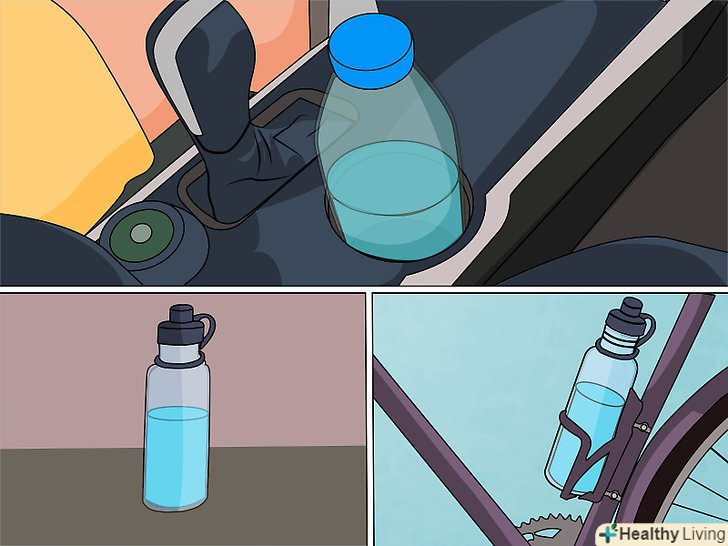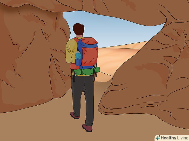 Візьміть з собою побільше води. Всякий раз при подорожі через пустелю беріть більше води, ніж плануєте витратити. При ходьбі під палючим сонцем і спеці 40ºC організм людини за одну годину виділяє в середньому близько 900 мілілітрів поту. [3] у разі непередбаченої ситуації запасна вода стане в нагоді вам.- Розподіліть воду по декількох ємностей. Таким чином ви захиститеся від повної втрати води, якщо вона раптом витече з однієї ємності. [4]