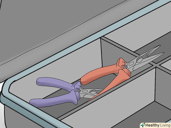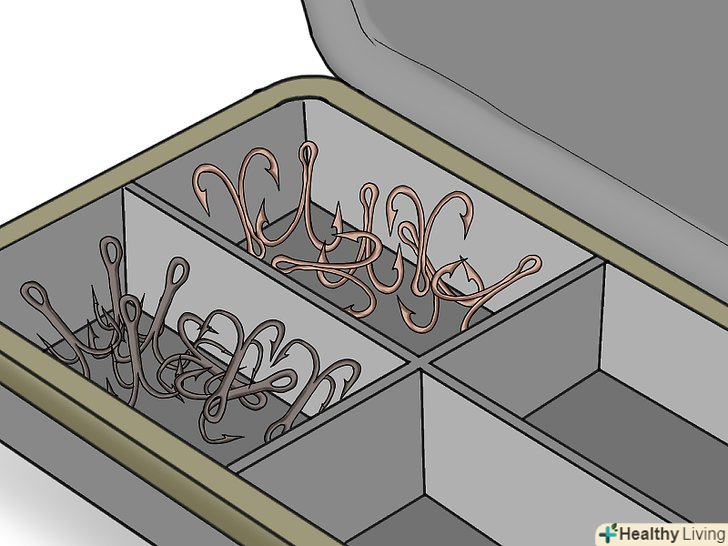 Вибирайте таку коробку, яка допоможе вам акуратно розподілити і скласти ваші снасті. вона повинна мати достатньо відділень, щоб вмістити ті види наживки, які ви використовуєте найбільш часто, розташувавши їх окремо, щоб їх гачки не чіплялися один за одного. Вам можуть краще підійти лотки з регульованими роздільниками, а також різнорозмірними відділеннями; якщо ви рибалите зі спіннербейтами, вам може стати в нагоді стійка, де вони б розташовувалися вертикально, а не в горизонтальному положенні. Вибирайте таку коробку, яка допоможе вам акуратно розподілити і скласти ваші снасті. вона повинна мати достатньо відділень, щоб вмістити ті види наживки, які ви використовуєте найбільш часто, розташувавши їх окремо, щоб їх гачки не чіплялися один за одного. Вам можуть краще підійти лотки з регульованими роздільниками, а також різнорозмірними відділеннями; якщо ви рибалите зі спіннербейтами, вам може стати в нагоді стійка, де вони б розташовувалися вертикально, а не в горизонтальному положенні.- Якщо ви рибалите, використовуючи пластикових черв'яків, лотки повинні бути зроблені з матеріалу, який не буде взаємодіяти з м'яким пластиком, з якого вони виготовляються. (Вам не слід тримати пластикових черв'яків і воблерів в одному відділенні з тієї ж самої причини). Ви можете також тримати пластикових черв'яків в маленькій коробці для снастей, зробленої спеціально для штучних черв'яків. Таку коробку ви можете помістити в піддон більш об'ємної коробки для снастей.