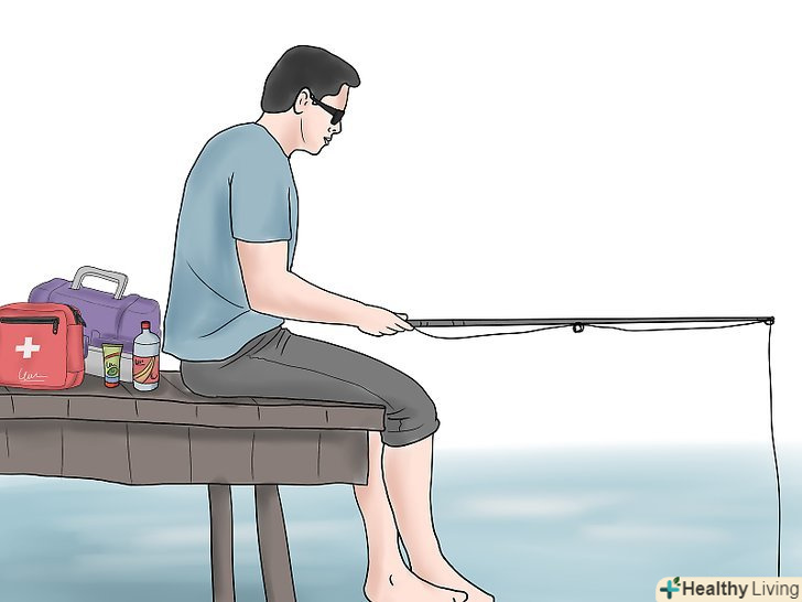Підготуйте невеликий пакет першої допомоги. такий пакет стане в нагоді вам в разі синців, ударів, порізів, які можуть трапитися в той час, коли ви на природі. Кілька пластирів, антисептична мазь, бинт, невеликий моток водонепроникної медичної стрічки і, можливо, бульбашка дезинфікуючого засобу для рук допоможуть вам впоратися з основними незначними травмами, які можливі на риболовлі. Підготуйте невеликий пакет першої допомоги. такий пакет стане в нагоді вам в разі синців, ударів, порізів, які можуть трапитися в той час, коли ви на природі. Кілька пластирів, антисептична мазь, бинт, невеликий моток водонепроникної медичної стрічки і, можливо, бульбашка дезинфікуючого засобу для рук допоможуть вам впоратися з основними незначними травмами, які можливі на риболовлі.- Дещо з цього списку ви можете отримати безкоштовно, якщо ви відвідуєте торгові виставки. Багато організацій охорони здоров'я, представлені на таких виставках, пропонують невеликі аптечки першої допомоги або їх окремі компоненти в якості рекламної продукції.