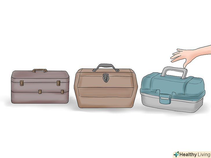 Визначтеся з тим, який вид прісноводної риболовлі вам підходить. чим більше коробка для снастей, тим більше рибальських пристосувань вона може вмістити. У той же час, велика коробка може бути досить важкою і громіздкою. Велика коробка не практична в тому випадку, якщо вам належить довго добиратися пішки до місця риболовлі. При цьому маленька коробка може бути непрактична для тривалої поїздки, де вас можуть очікувати найрізноманітніші погодні умови. Визначтеся з тим, який вид прісноводної риболовлі вам підходить. чим більше коробка для снастей, тим більше рибальських пристосувань вона може вмістити. У той же час, велика коробка може бути досить важкою і громіздкою. Велика коробка не практична в тому випадку, якщо вам належить довго добиратися пішки до місця риболовлі. При цьому маленька коробка може бути непрактична для тривалої поїздки, де вас можуть очікувати найрізноманітніші погодні умови.- Якщо ви хочете бути завжди готові до риболовлі у випадковому озері або річці, вам знадобиться компактна коробка передач, яку Ви можете носити з собою – наприклад, невелика металева або пластикова коробка, яка поміщається в кишеню вашої сорочки або чобіт, або кріпиться на поясі. У вас також може бути об'ємна коробка для снастей на березі, з якої б ви могли брати з собою те, що вам потрібно – і тримати напоготові відповідні приманки для «лову під час Жору».