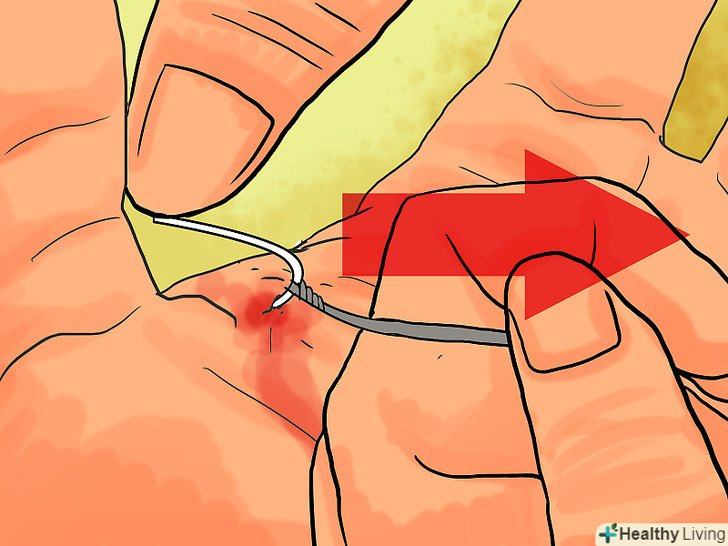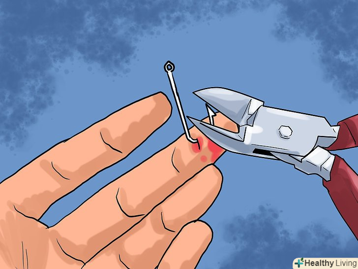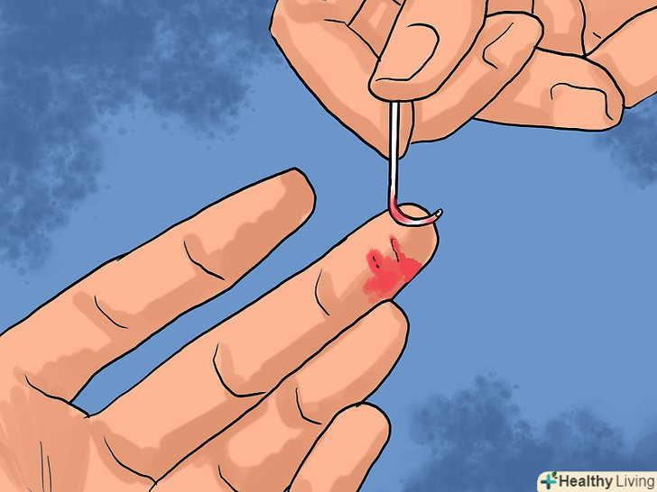 Акуратно проштовхніть гачок через ваш палець до того, як не вилізе на іншу сторону, якщо тільки зубець не увійшов в шкіру. буде боляче, але це краще, ніж безпосередньо витягувати гачок, розриваючи при цьому шкіру. Акуратно проштовхніть гачок через ваш палець до того, як не вилізе на іншу сторону, якщо тільки зубець не увійшов в шкіру. буде боляче, але це краще, ніж безпосередньо витягувати гачок, розриваючи при цьому шкіру.