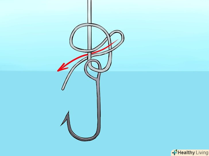 Пропустіть кінець волосіні через петлю, яка утворилася після першого обороту (щоб її зробити, ви підставили вказівний палець).