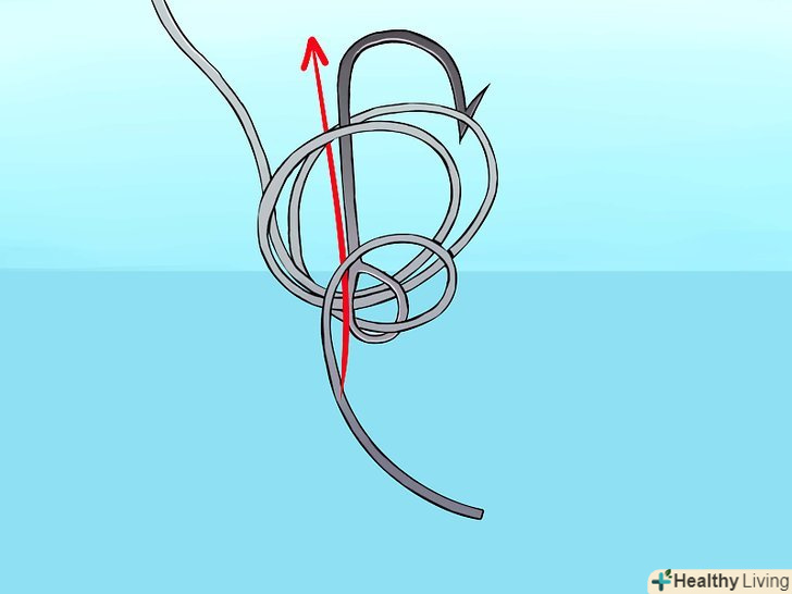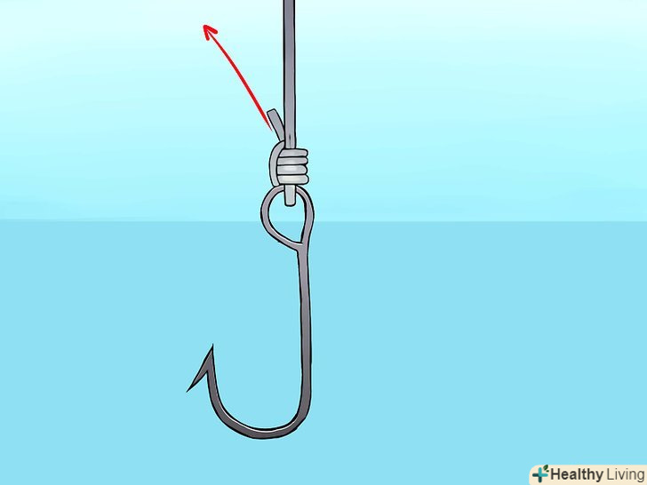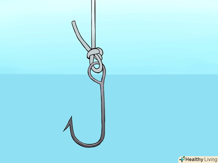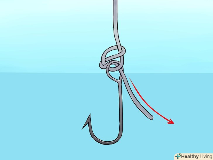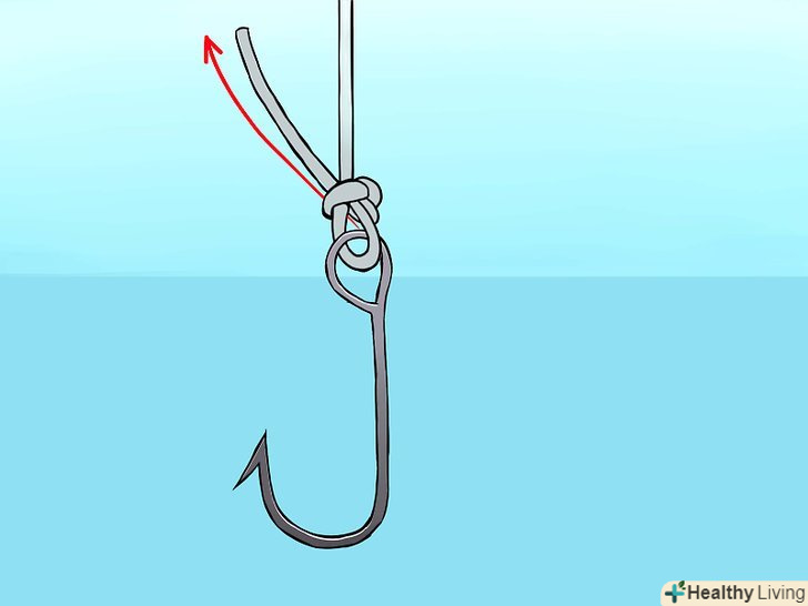 Затягніть вузол, смикнувши за вільний кінець волосіні. це потрібно робити акуратно, підтримуйте Волосінь і гачок пальцями.