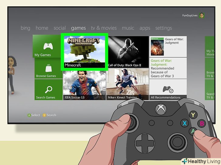 Запустіть Minecraft. вставте диск з Minecraft в консоль. Також Minecraft можна вибрати в ігровій бібліотеці-натисніть "Ігри" gt;» мої ігри «gt;»Minecraft".