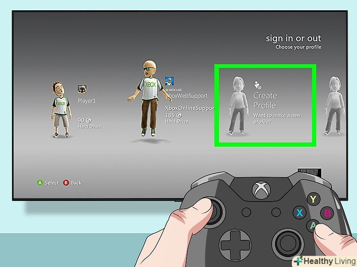 Увімкніть Xbox 360 і один контролер. якщо ваш контролер не підключений до вашого облікового запису Xbox Live, натисніть кнопку «Guide» (Меню), натисніть " X " і виберіть свій обліковий запис Xbox Live Gold.