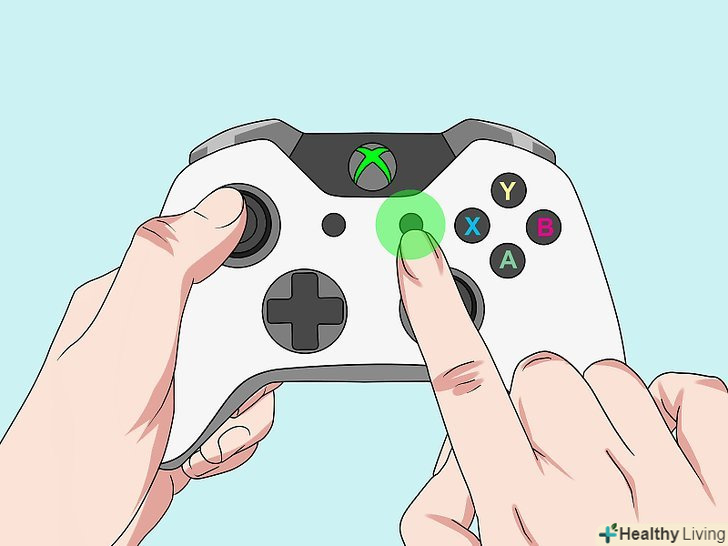 Натисніть кнопкуStart (Пуск) на другому контролері. коли світ завантажиться, натисніть кнопку «Start», яка розташована праворуч від кнопки «Guide» і позначена спрямованим вправо трикутником.